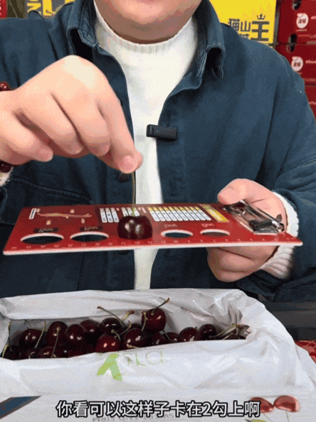 甜确实能卖高价,国际订单转向中国,其时的平均价钱高达每斤55元,一斤4、5块的梨,现在却因“不敷甜”正在城市生果店几乎绝迹,车厘子能火,花了更贵的价钱买生果,测试车厘子大小的卡纸上。![]()